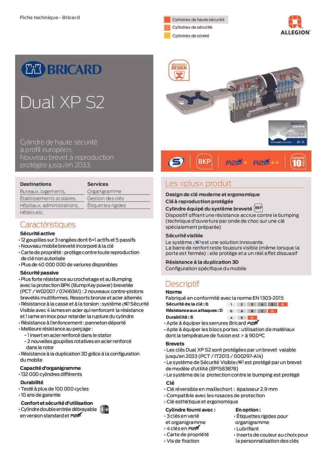 Produit aux normes assurances - AB Serrurier Le Havre Le Havre Fiche technique Cylindre de haute sécurité DUAL XP S2 – AB Serrurier Le Havre
